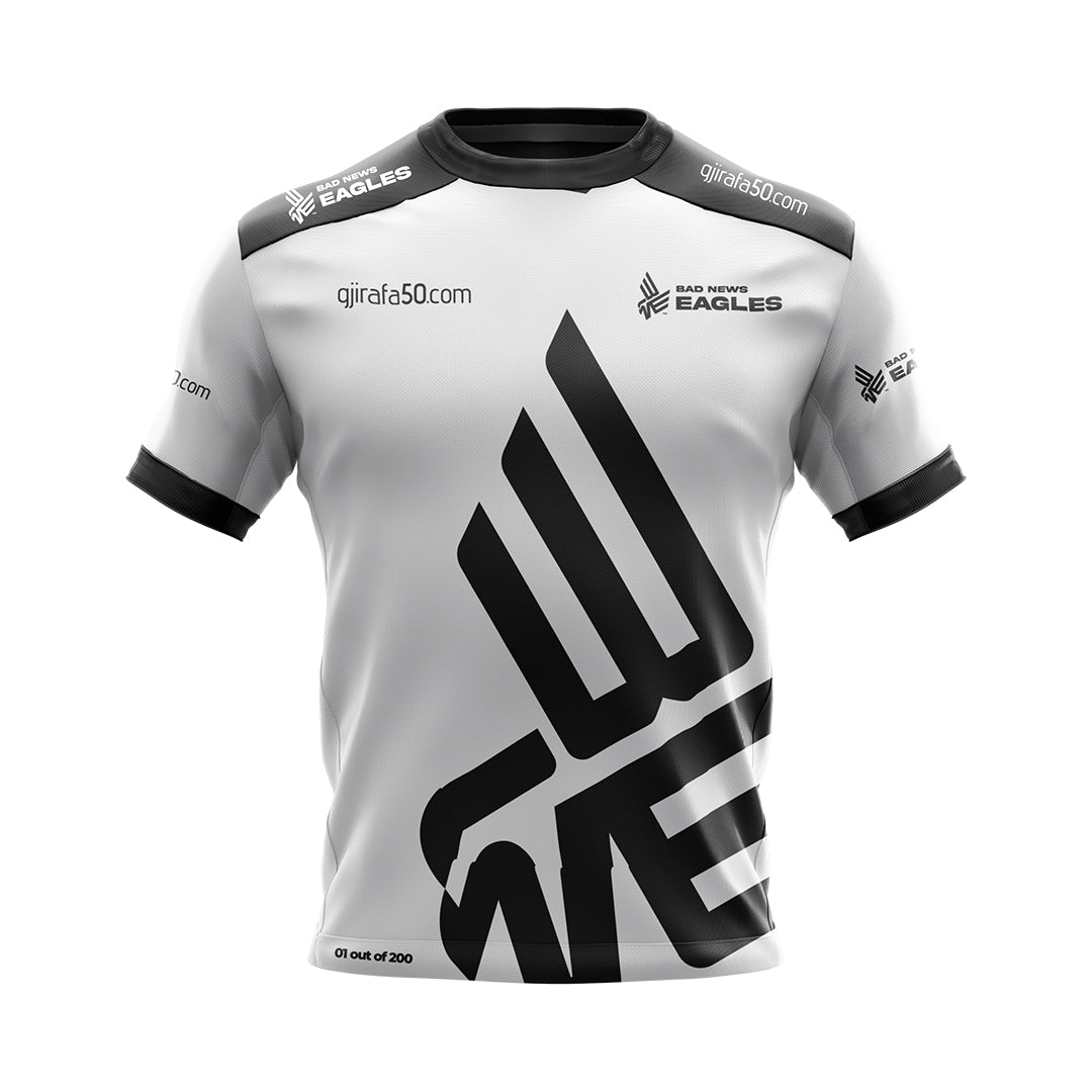 Each jersey has its own unique serial number placed on the lower side. Its main color is white combined with black details and it has the personalized logo of the BNE team.